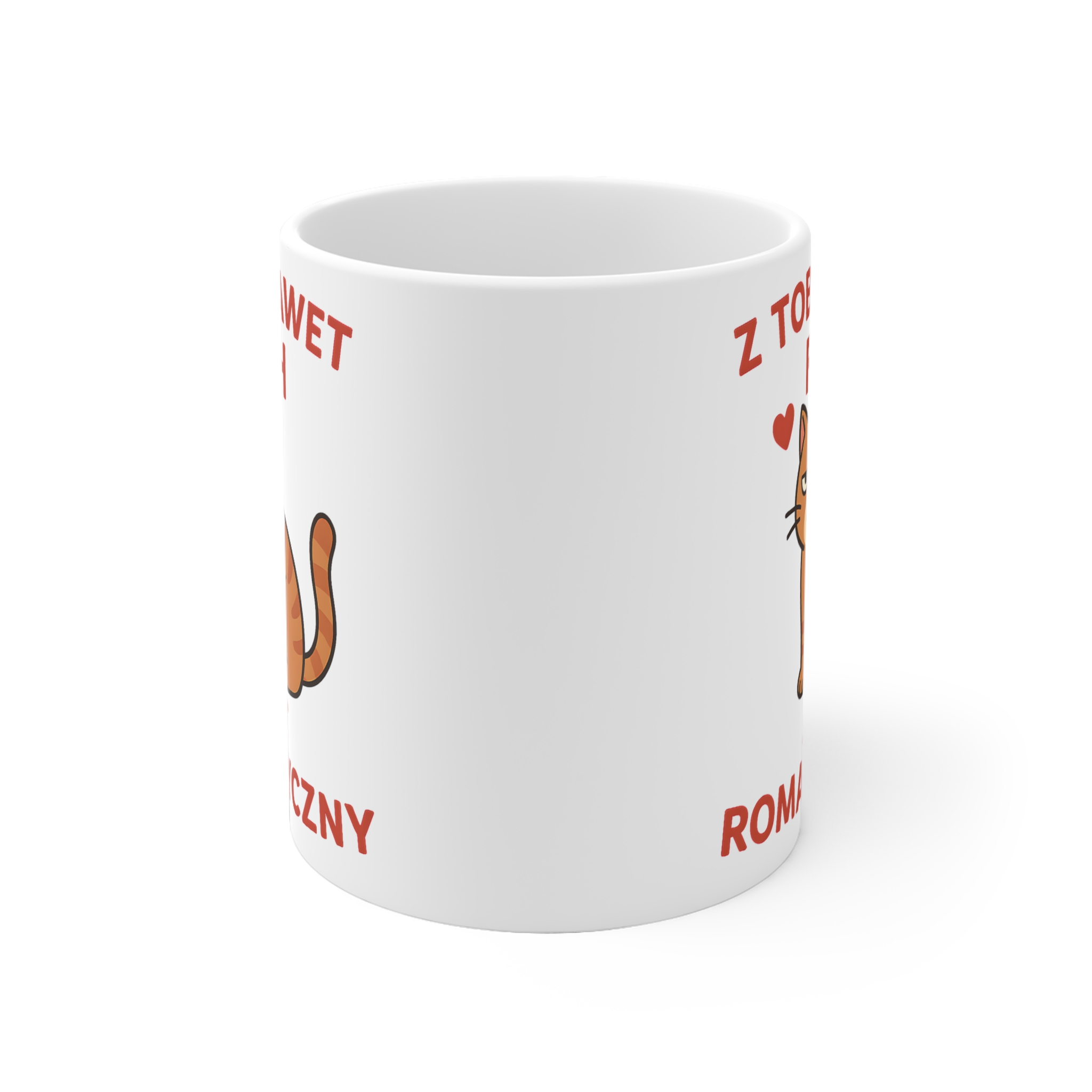 Jeśli lubisz kubki z nadrukiem, które mają charakter i potrafią poprawić nastrój, to ten będzie strzałem w dziesiątkę. Pojemność 330 ml daje miejsce na solidną porcję kawy, herbaty albo czegoś, co pomaga przetrwać dzień, gdy humor masz równie „romantyczny” jak kot z grafiki. Nadruk jest trwały, więc nie zniknie po kilku zmywaniach, a sam kubek dobrze leży w dłoni, co docenisz zwłaszcza wtedy, gdy próbujesz ukryć swój własny foch przed światem.